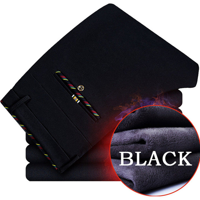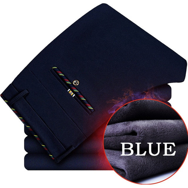 Brother Wang Brand 2019 Winter New Men's Warm Casual Pants Fashion Business Slim Elastic Fleece Thick Pants Plus Size 44 46