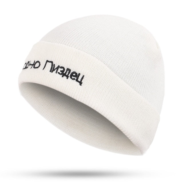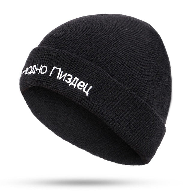 New hot sale Russian letters embroidery casual hats men and women fashion knit winter caps hip hop outdoor warm beanie pompon