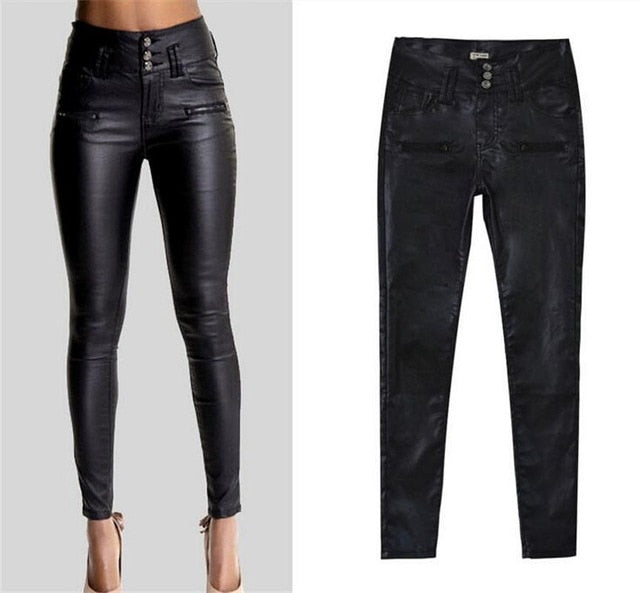 2018 New Winter elegant ladies fashion PU leather Leggings wild Slim pencil trousers feet leather pants brand design women dress