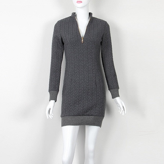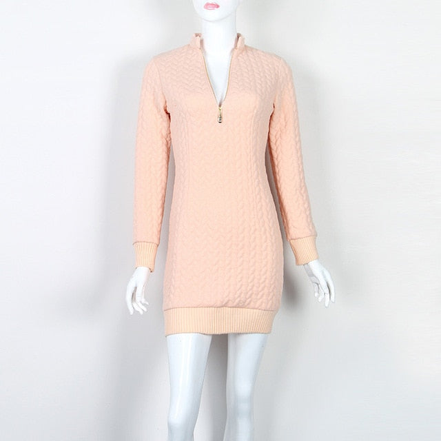 Mini Fashion Zip-up Zipper 2018 Autumn Winter Sweater Dress Sexy V Neck Knit Dresses Warm Bodycon Women Dress New GV101