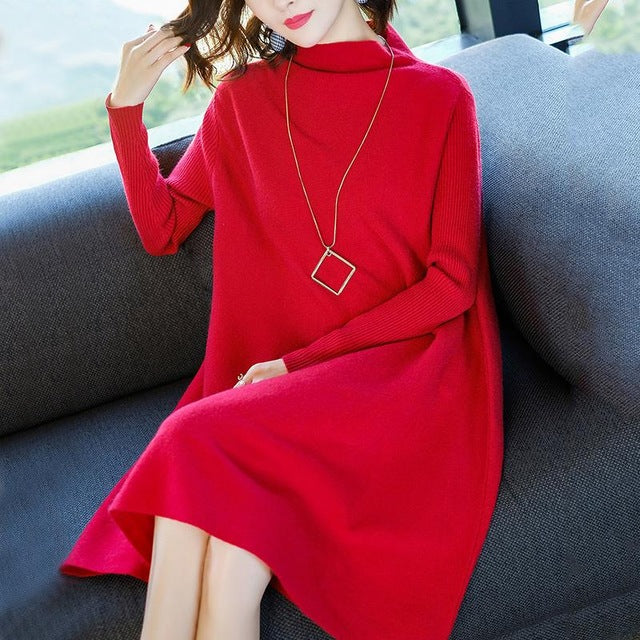 Women Dress Winter Loose Style Cashmere Knitted Dresses 2018 New Fashion Autumn Warm Long Pullover Dress Woman Thick Knitwear