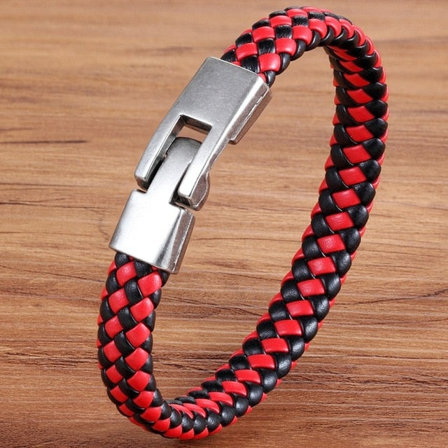 TYO Black/Brown/Red/Blue Color PU Leather Bracelet Easy Hook Colorful Veins Bangle For Women Jewelry Accessories Father's Day